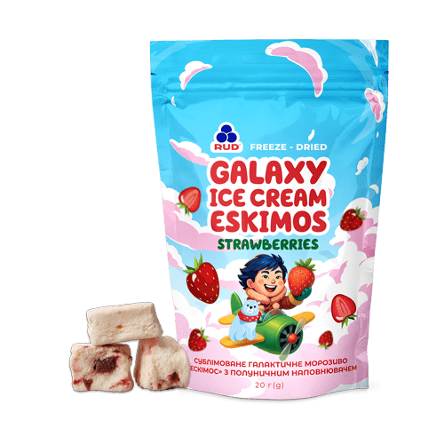 Delicate freeze-dried ice cream with strawberry pieces and an incredible aroma will be enjoyed by lovers of unusual flavors.