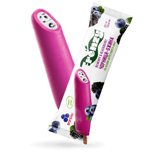 Ніжне морозиво зі шматочками чорниці та ожини в ягідній соковій глазурі.