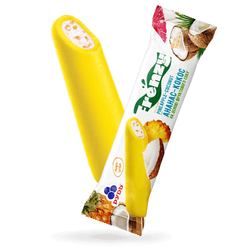 Ніжне кокосове морозиво зі шматочками ананаса в ананасовій соковій глазурі.