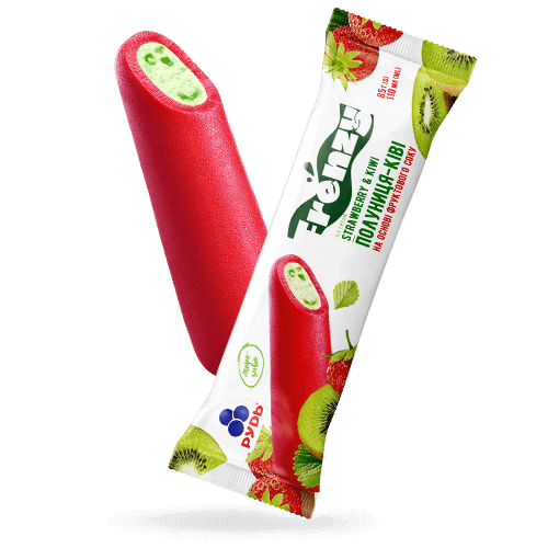 Морозиво зі шматочками тропічного ківі в глазурі з полуничного соку.